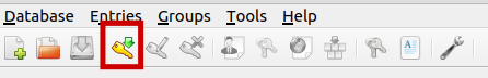 Your database should now be operational. Let’s create the entry containing your username, password and TOTP for the connectVM Cloud cloud. Click Add a new entry (the fourth button on the toolbar, marked with the red rectangle on the screenshot below.