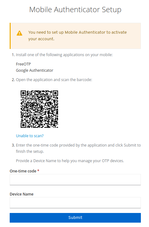 After having created an account on https://console.connectvm.com/ but before first login, you will receive the Mobile Authenticator Setup prompt, as in the following image: