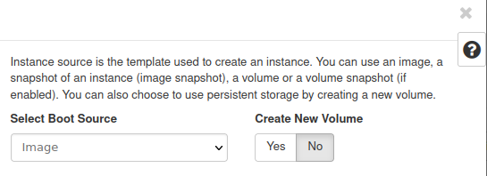 The default value in the drop-down menu Select Boot Source is Image, meaning that you will choose from one of the images that are present in your version of Horizon. If another value is selected, revert to Image instead.