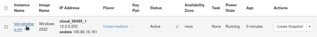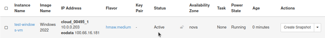 Once the Status is Active, the virtual machine should be running. The next step involves setting access to it.