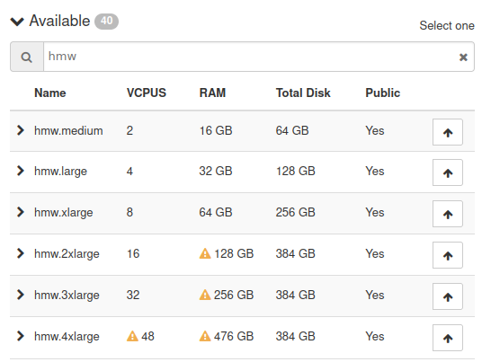 In this step you will choose the flavor of your virtual machine. Flavors manage access to resources such as VCPUS, RAM and storage.