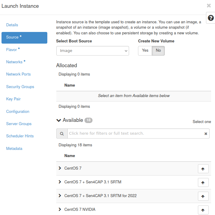 To solve this issue, choose a flavor that supports your chosen source instead. In the image above, vm.a6000.4 is not available but, say, hm.large is.