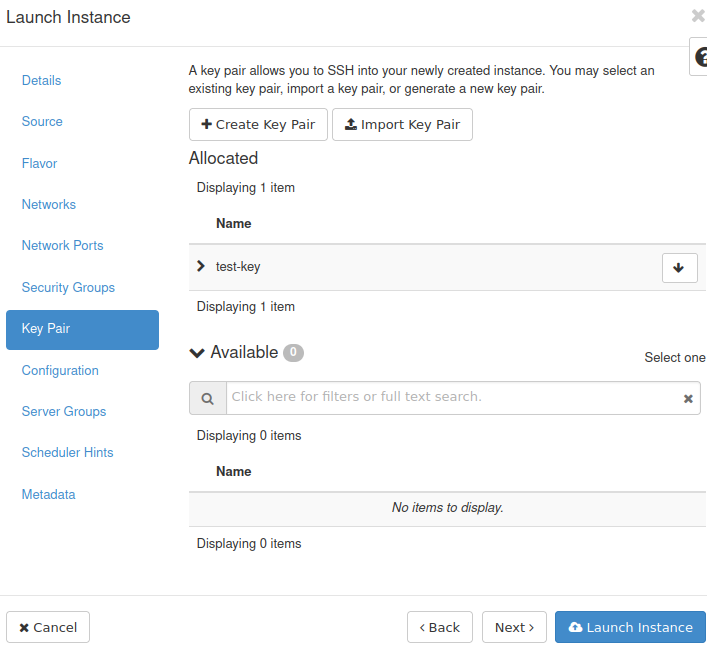 - using option Import Key Pair – take the keys you already have and upload them to the cloud,