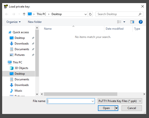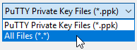 In the lower section of the window there should be a drop-down menu with the option PuTTY Private Key Files already selected. Click it and choose All Files (*.*) instead: