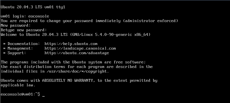 Fig. 2 Click on the black terminal area (to activate access to the console). Type: eoconsole and hit Enter.🔗