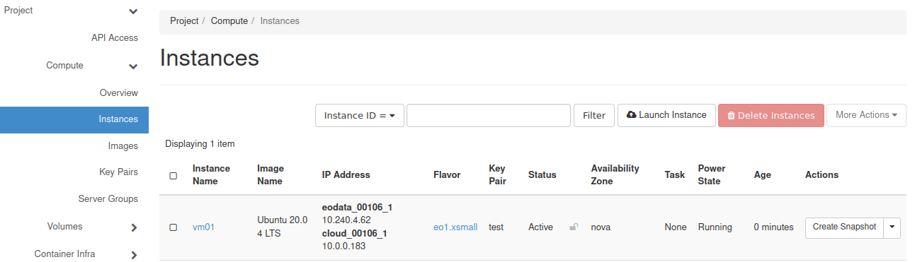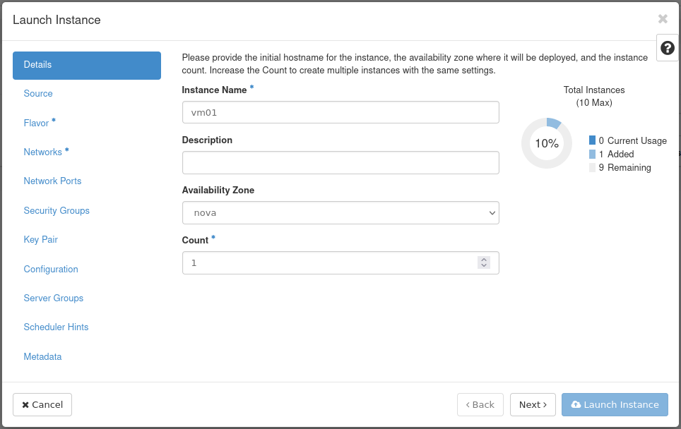 Insert the name of the Instance (eg. “vm01”) and click Next button.