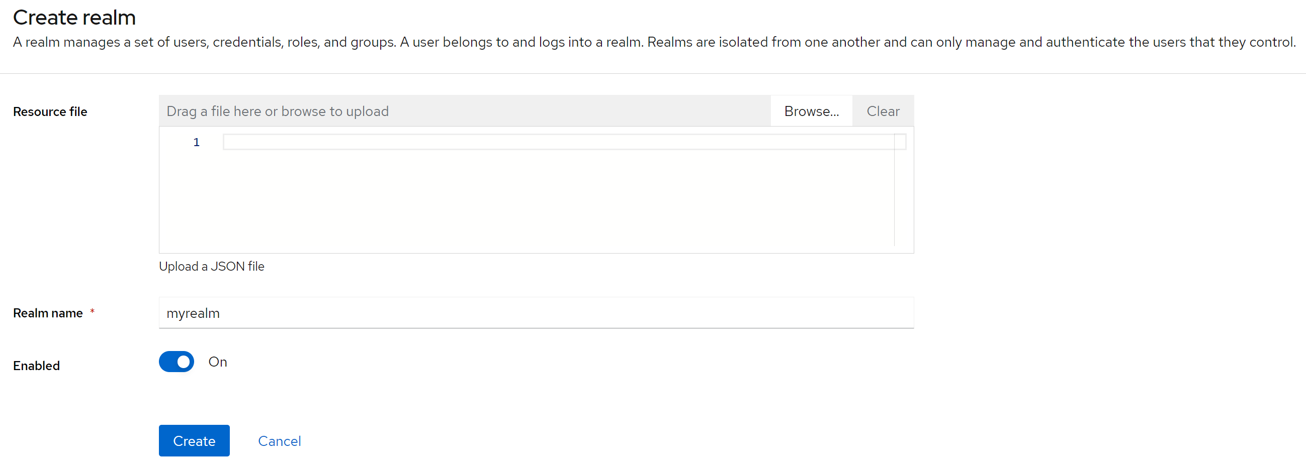 We will just enter the realm name myrealm, leaving the rest unchanged: