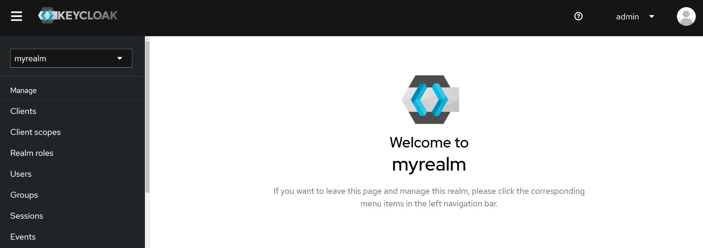 In the left upper corner, instead of master now is the name of the selected realm, myrealm.