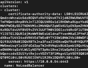 Incidentally, the same 10.0.0.54 address is also present in the config file, ending with port address :6443.