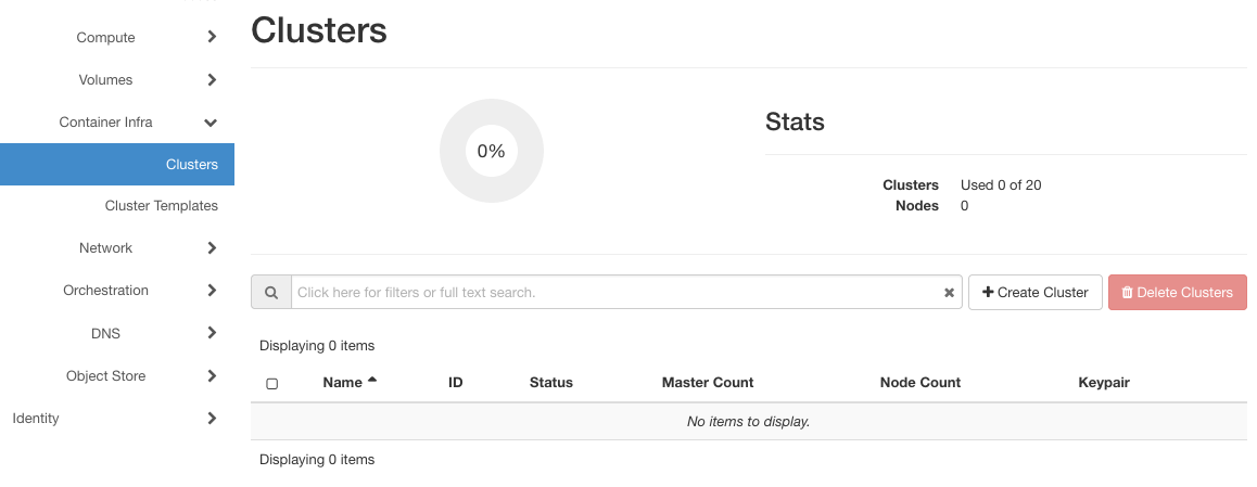 Also in the Horizon’s “Compute” panel you can see the virtual machines which were created for master and worker nodes: