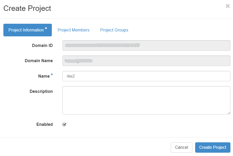 - To get project_id, the easiest way is to list all of the projects with Identity -> Projects, click on project name and read the ID.