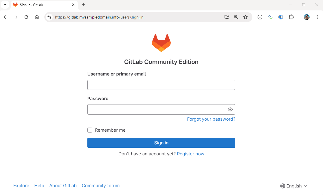 After a short while, when all the pods are up, we can access Gitlab’s service entering the address: gitlab.