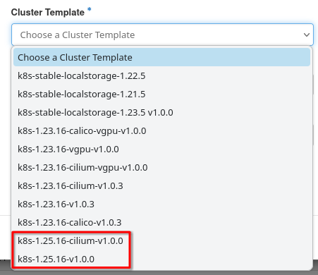 - create a new cluster without activating option Ingress Controller in window Network. That option should remain like this: