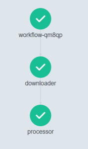 This sample mocks a workflow with 2 tasks/jobs. First the downloader task runs, once it finished the processor task does its part. Some highlights about this workflow definition: