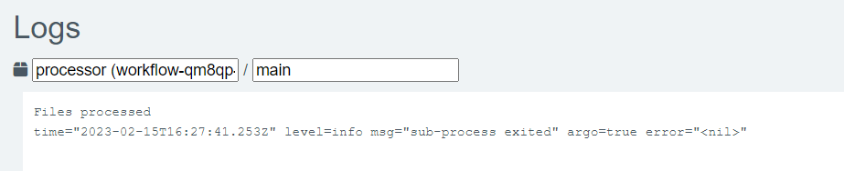 The results show that indeed the message “Files processed” was printed in the container: