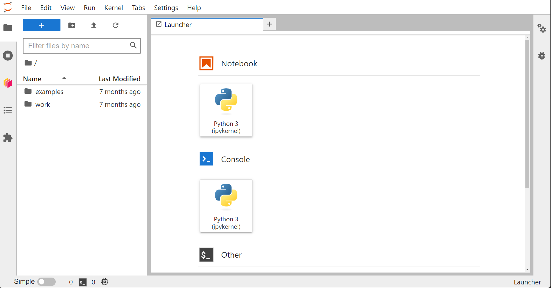 The installed Jupyter instance already contains Dask and other useful Python libraries installed. To run a sample job, first activate the notebook by clicking on icon named NoteBook → Python3(ipykernel) on the right hand side of the Jupyter instance browser screen.