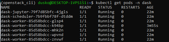 dask-scheduler LoadBalancer 10.254.41.250 64.225.128.236 8786:31707/TCP,80:31668/TCP 6m49s