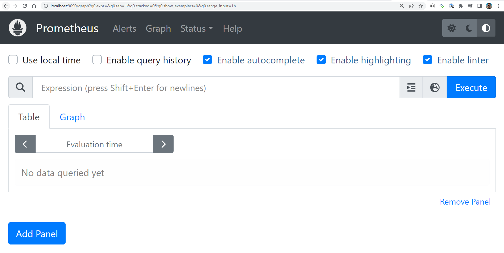 You can select one of the metrics and hit Execute button to process the query for statistics of this metrics. For example, insert the following expression