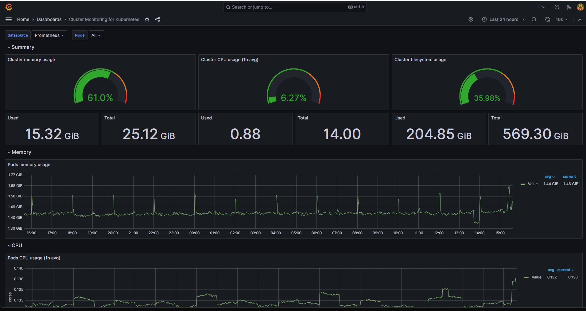 As the result, the Grafana Kubernetes observability dashboard gets populated: