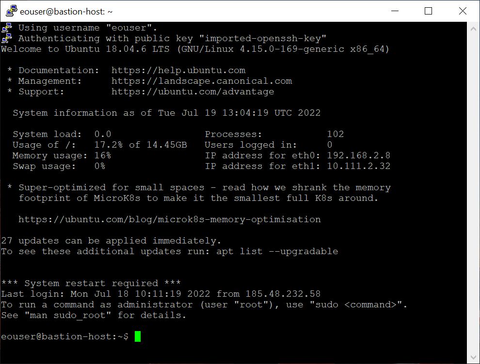 Step 1. Information required to establish connection with the bastion host.🔗¶